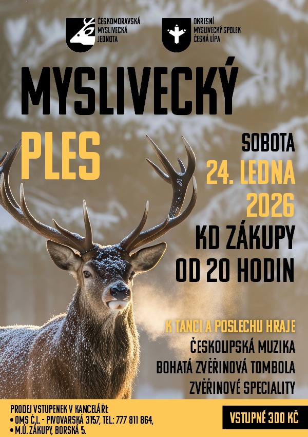 Milovníci myslivosti a dobré zábavy, připravte se na myslivecký ples OMS Česká Lípa!